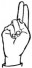 На ћирилици написано МЛАДЕН ГРАБОВЧИЋ састоји се из 15 слова [?]. Исписано ћириличном једноручном азбуком за глувонеме: